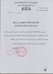 الإعلانات إعلان لفائدة الطلبة المستفيدين من برنامج تداريب تحسين المستوى في الخارج By othmani On ديسمبر 16, 2024 0 590 Share 0 590 Share